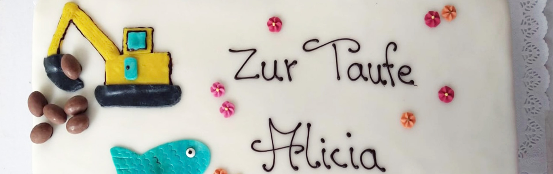 Taube, Kreuz oder kleine Baby-Schühchen? Wir gestalten Ihre Tauftorte ganz individuell: rund, eckig oder mehrstöckig, in verspielten Pastelltönen und mit essbarem Namenszug und Datum der Geburt und Taufe. Jedes Motiv wird in liebevoller Handarbeit gefertigt und macht Ihre Feier unvergesslich.